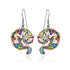Adorable sleeping cat earrings featuring a dangling tail adorned with vibrant, colorful patches. Perfect for cat lovers and feline enthusiasts, these whimsical earrings bring personality and charm to any outfit. The playful design makes them an ideal gift for cat jewelry collections or anyone who adores quirky, animal-inspired accessories. A delightful way to show your love for all things feline.