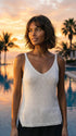 LOOWIE - CODEBWH Italian S/M White Shimmer Knit V-Neck Tank Top