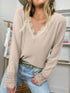 Supreme Fashion - Solid Lace Trim V Neck Long Sleeve Top