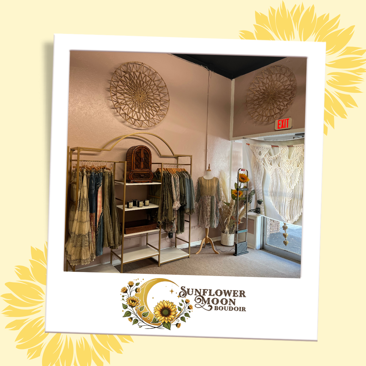Sunflower Moon Boudoir, opening in April 2025, is more than just a clothing store—it’s a dream realized by two women who share a love for fashion, community, and new beginnings.