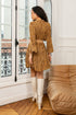 This playful Lurex tunic dress features a vibrant symmetric pattern that catches every eye. The flattering V-neck with front buttons adds a touch of charm, while the long-flared sleeves bring a fun, flowing movement. Ruche details highlight your silhouette with subtle texture, making this dress perfect for standing out on any occasion.