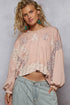 Pol Clothing - Long sleeve V-neck contrast PEACE letter top